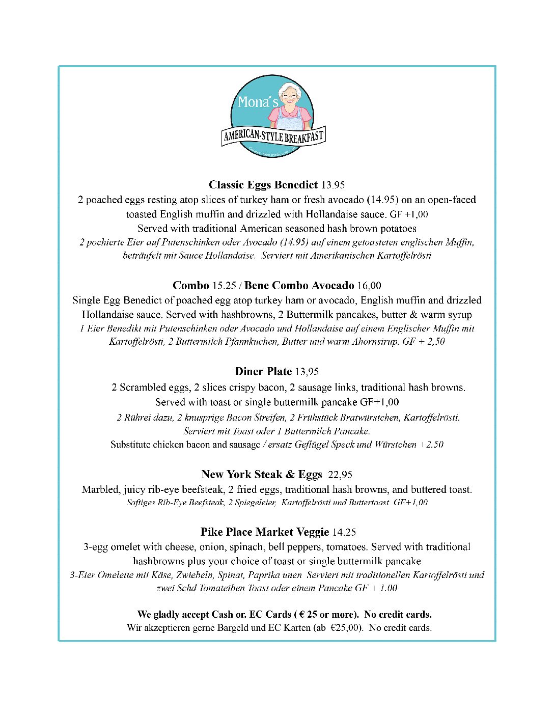 We gladly accept Cash or Debit / EC Girocards with minimum € 25.00 purchase